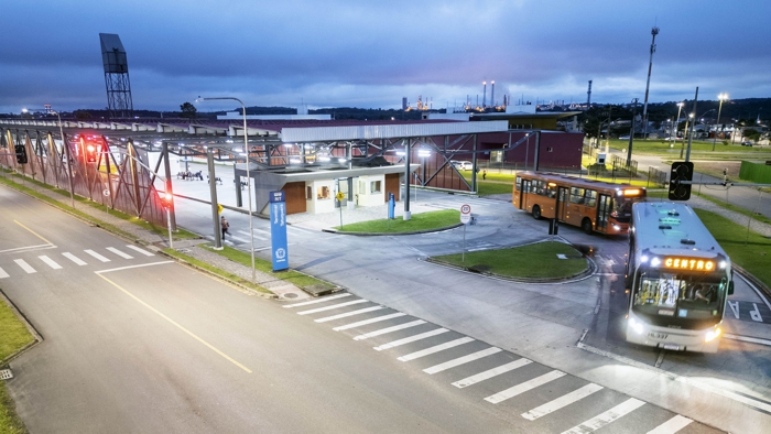 Marcelo: Hoje a gente não tem plataforma suficiente. E qual é a ideia da URBS? Todas essas linhas que estão ao sul do nosso terminal virarem alimentadores, por exemplo, a Juliana, Caximba, Tupi, Rurbana, serão linhas alimentadoras até o terminal, e do terminal eles saem com linhas de transporte de massa, ou seja, com capacidade para pegar, seja o troncal da Linha Verde, ou o CIC, daí com transporte rápido de maior capacidade de passageiro. Isso otimiza tanto a qualidade e a velocidade do transporte, quanto também o custo.